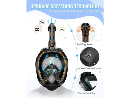 Greatever G2 Full Face Snorkel Mask with Latest Dry Top System,Foldable 180 Degree Panoramic View Snorkeling Mask with Camera Mount,Safe Breathing,Anti-Leak&Anti-Fog